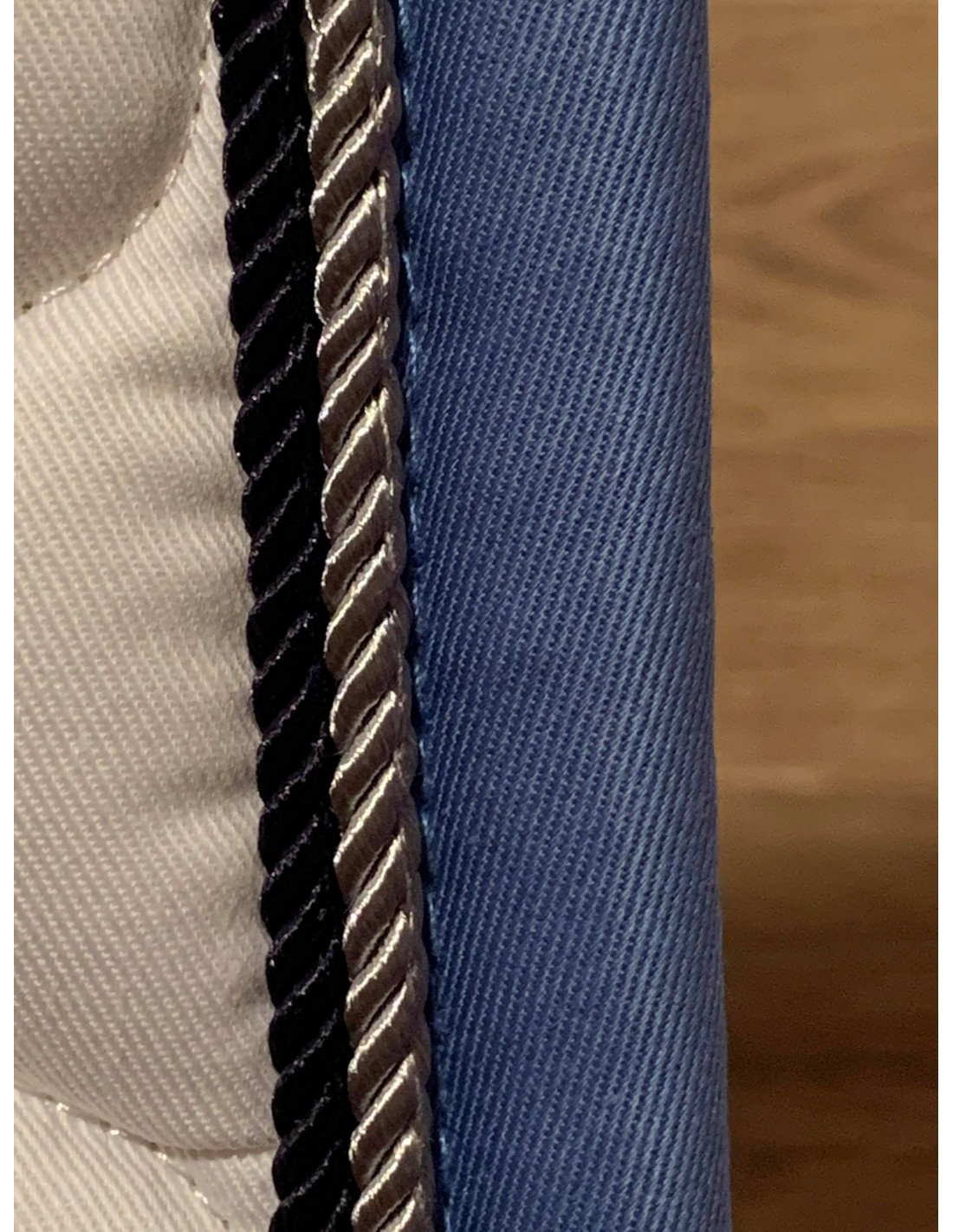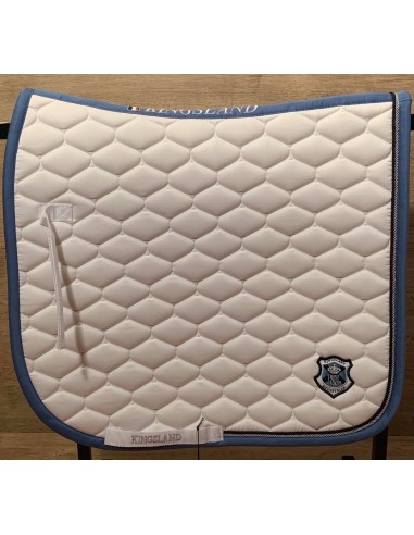 Le tapis de dressage essen avec des surpiqûres aux petits vagues et orné de deux fines cordes assorties et d'un écusson Kingsland sur l'arrière gauche de tapis. Le dessous du tapis est en coton et en nid d'abeille pour une excellente absorption de l'humidité et le confort de votre cheval. Il est lavable à 30°C.