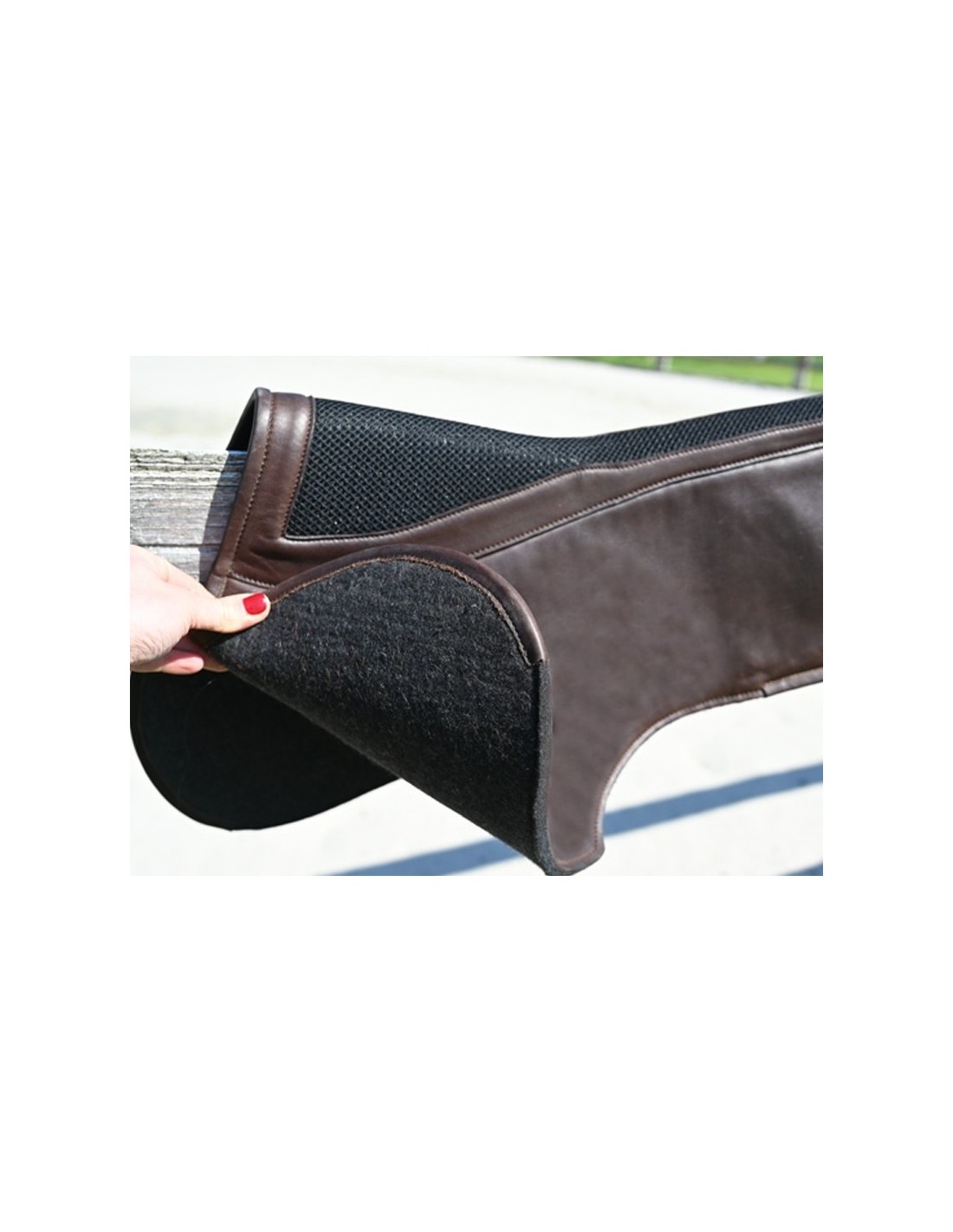 Innovation Jump'in le nouvel amortisseur anatomique en cuir et feutre est étudié dans les moindres détails pour une meilleure répartition du poids du cavalier et de la selle.