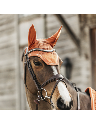 Le tissu autour des oreilles est extensible et ajusté. Il protège les oreilles du cheval.