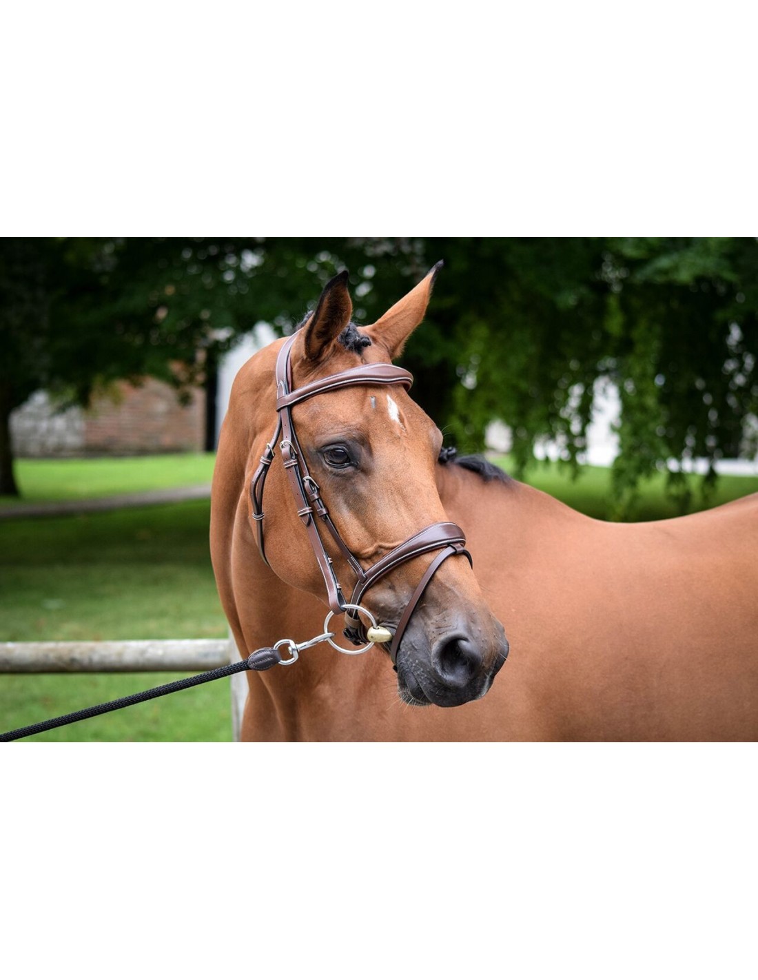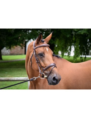 Un noseband est rattaché à la muserolle, la têtière est légèrement anatomique pour apporter plus de confort au cheval.