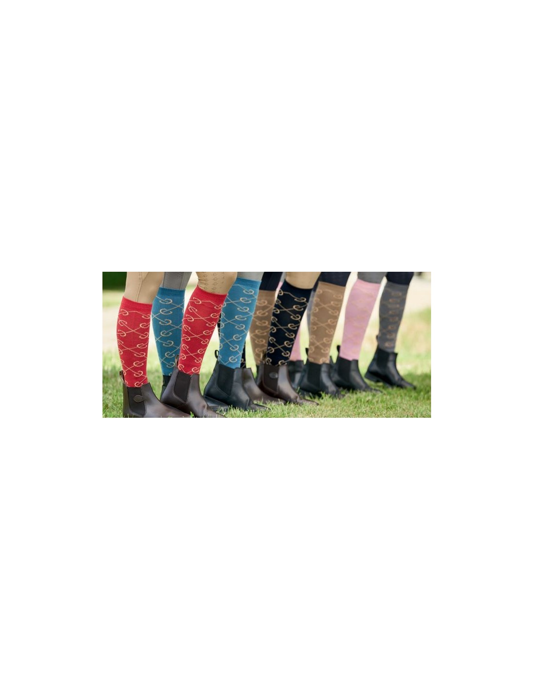 Chaussettes d'équitation aux motifs fers à cheval, à porter sur son pantalon d'équitation.