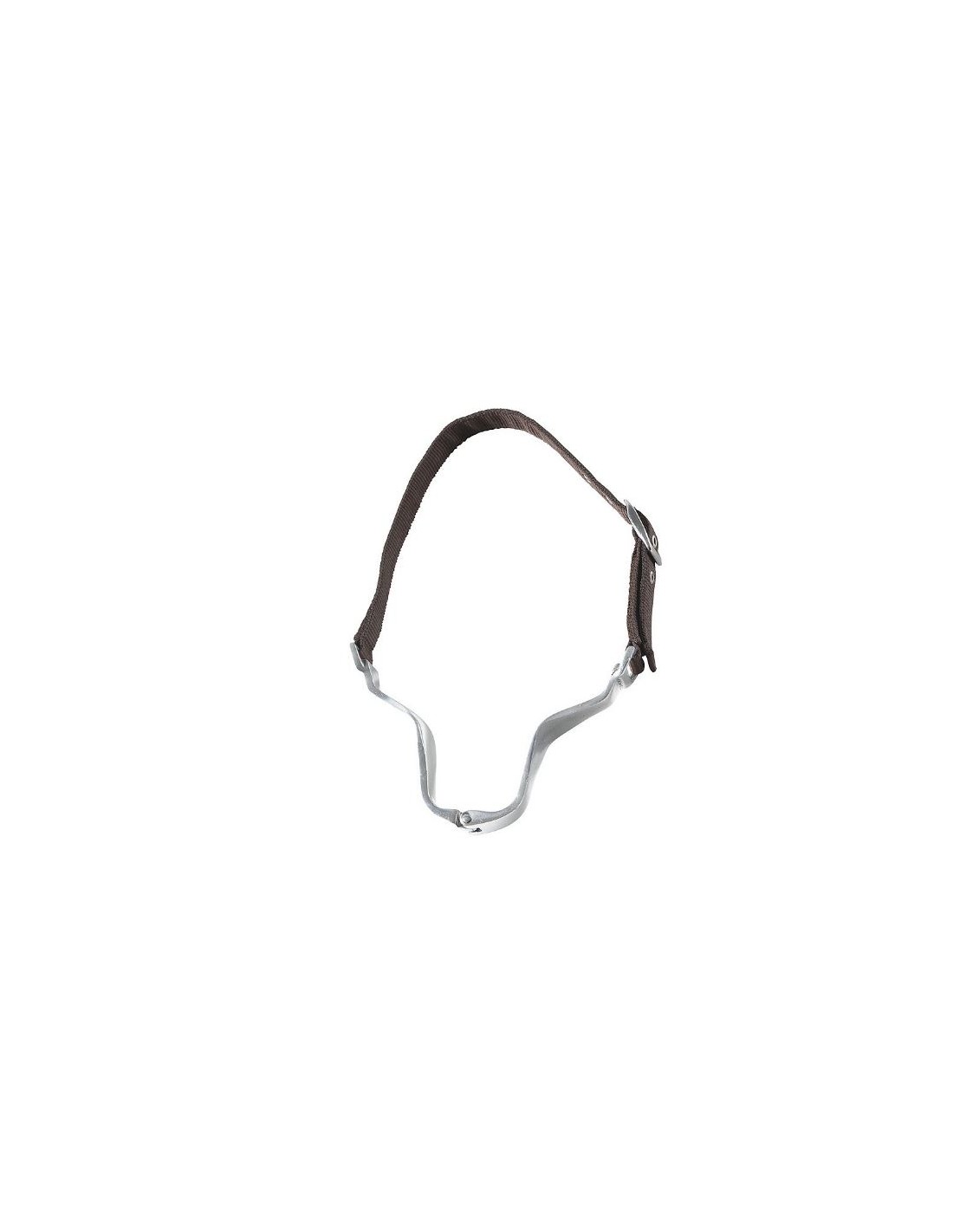 Léger, ce collier anti-tiqueur composé d'une pince en aluminium montée sur un sanglon en polypropylène double épaisseur avec œillets renforcés ne gêne pas le cheval, mais l'empêche d'avaler l'air lorsqu'il tique à l'air ou à l'appui.