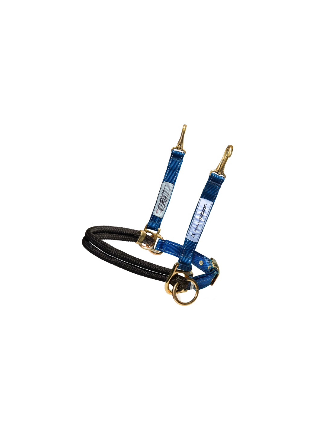 Le contrôleur LK avec sa muserolle en corde peut être facilement fixé au licol - ainsi faisant un licol 2 en 1 : licol d'entraînement et licol d'écurie !