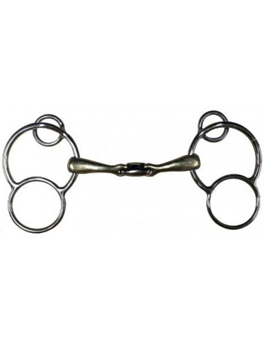 Conseil d'utilisation : Ce mors peut être utilisé avec des rênes attachées de manière fixe sur l'anneau du bas, avec des alliances ou avec deux paires de rênes.