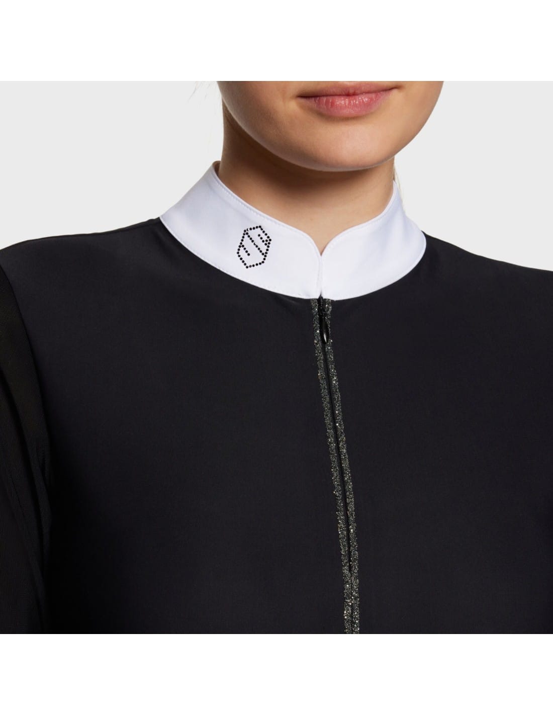 Polo de compétition au design raffiné avec le logo Swarovski® accompagné d'un zip détaillé en Crystal fabric et mesh sur les manches.