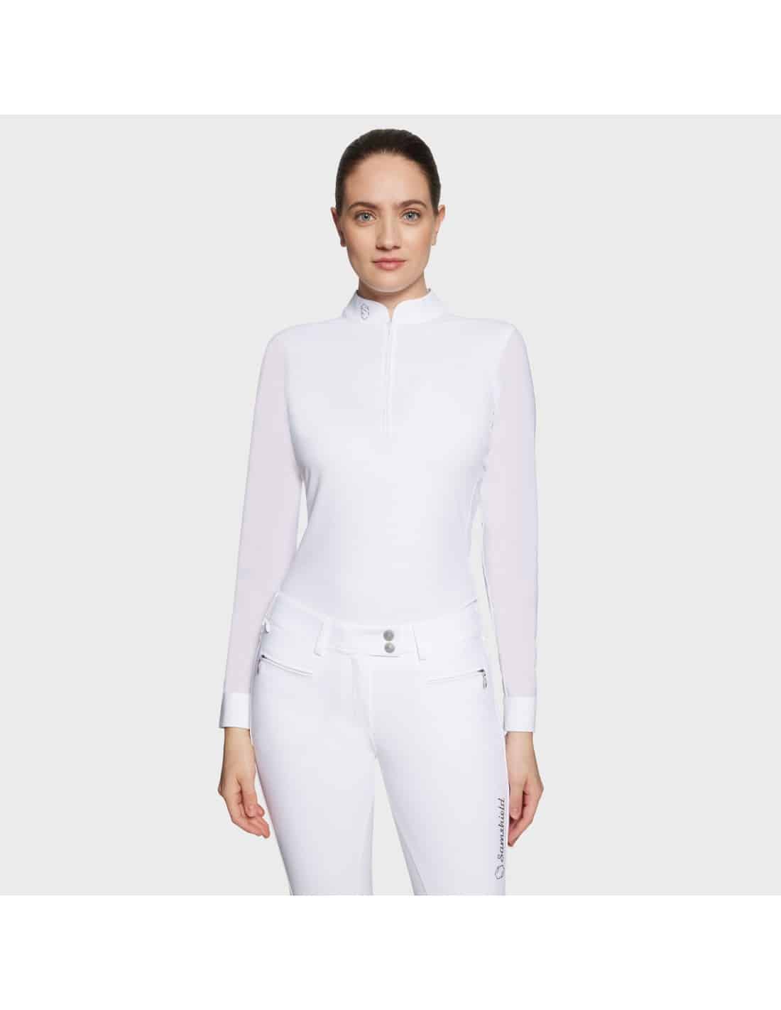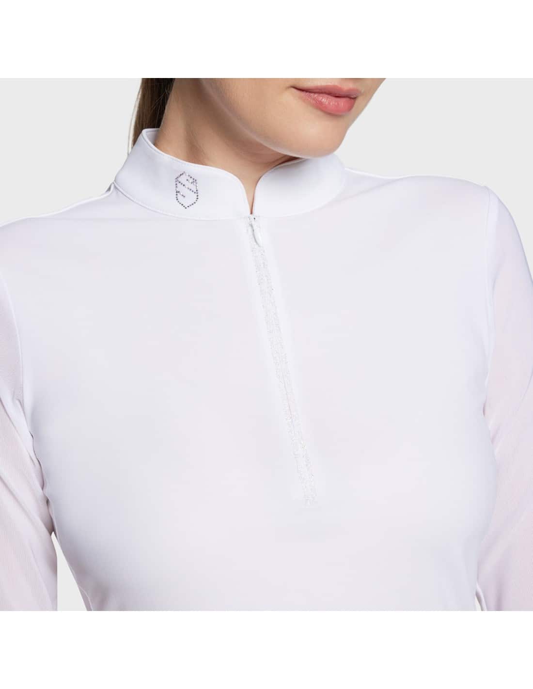 Polo de compétition au design raffiné avec le logo Swarovski® accompagné d'un zip détaillé en Crystal fabric et mesh sur les manches.