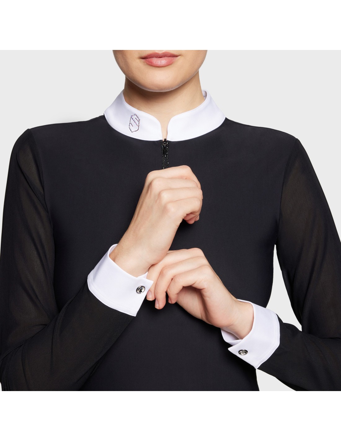 Design étincelant avec finitions premium, orné avec le blason Samshield en cristaux Swarovski sur le col,