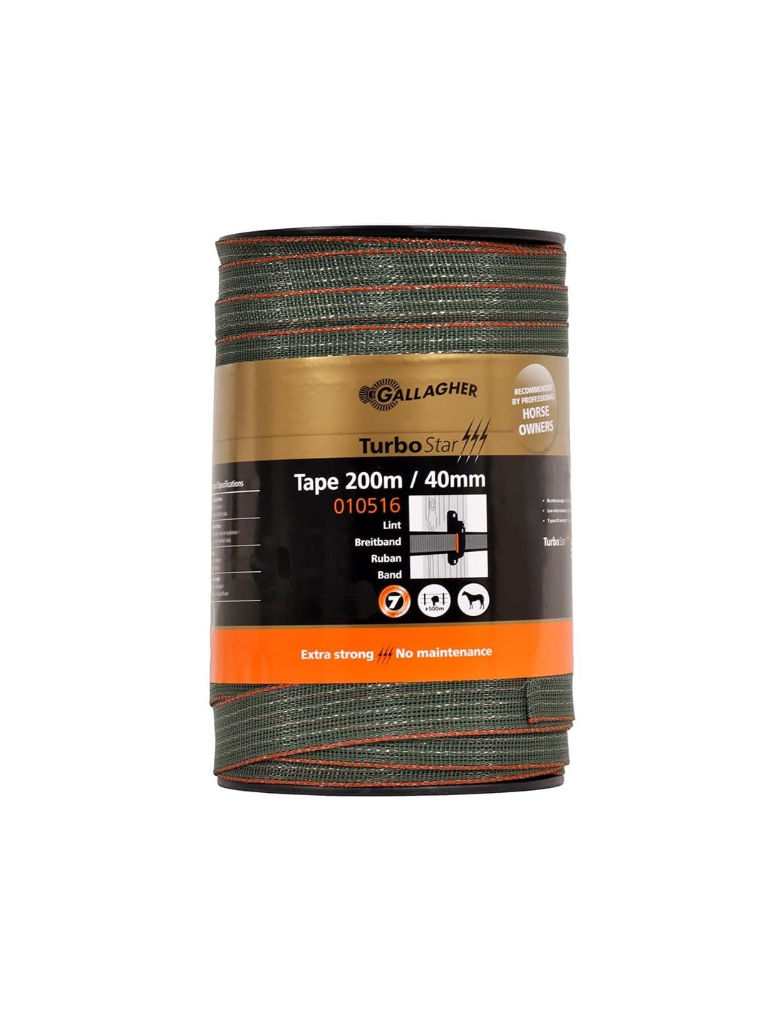 Ruban très résistant grâce aux bords inférieur et supérieur renforcés, conçu pour des clôtures ruban permanentes. Rouleau de 200m. 10 fils inox de 0,20mm et 4 fils superconducteurs de 0,30mm. La conception TurboStar assure une conductibilité 40X supérieure au ruban classique 40 mm. Ruban disponible avec une résistance très faible. Très robuste, laisse passer l'air, pas besoin de retendre régulièrement le ruban. Idéal pour les longues clôtures.