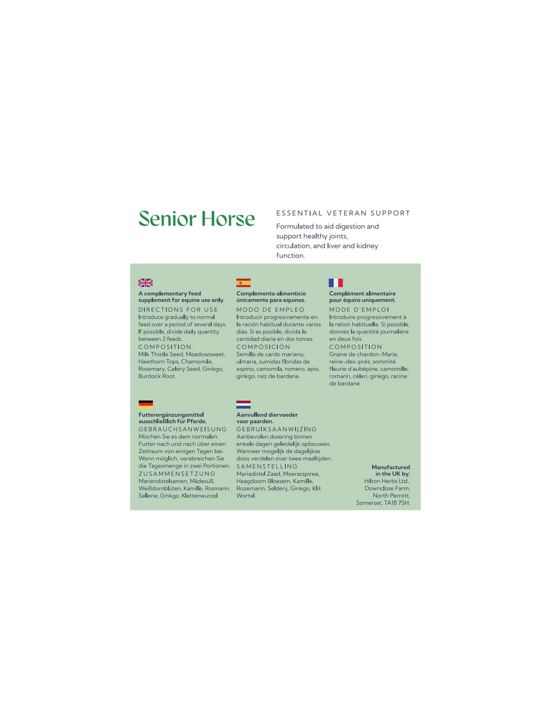 Senior Horse Hilton Herbs est un complément naturel, formulée pour :